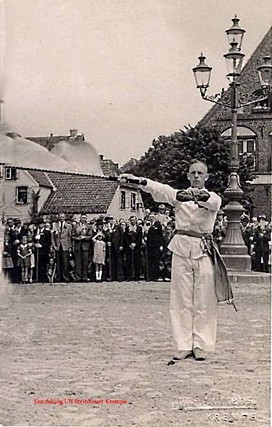 Sie entfalten ihre Wirkung besonders vor dem Hintergrund des historischen Rathause..Grundsätzlich besteht das Repertoire des Fahnenschwenkens aus 13 Handlungen, die Hermann Ruhe, Krempes Bürgermeister von 1900 bis 1926, in seiner "Chronik der Stadt Krempe" detailliert beschrieben hat.